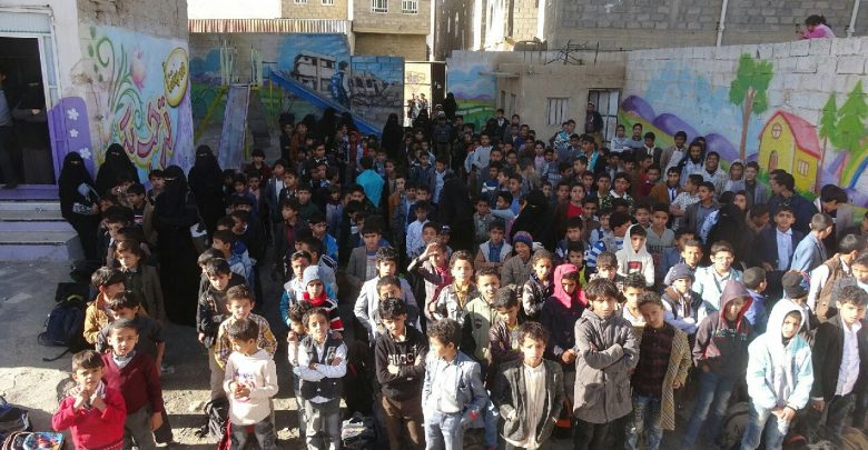 وقفة لطلاب مدرسة أبناء سبأ بعمران رفضا لصفقة القرن المخزية