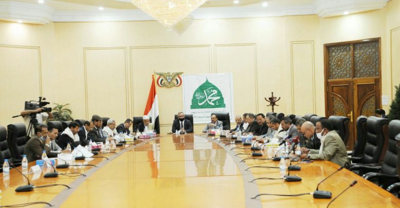 وتدارس الاجتماع بحضور وزراء الإدارة المحلية علي القيسي والتعليم العالي حسين حازب والنقل زكريا الشامي والمياه والبيئة المهندس نبيل الوزير والثقافة عبدالله الكبسي والأوقاف والإرشاد نجيب العجي وأمين العاصمة حمود عُباد وأمين عام مجلس الوزراء الدكتور أحمد الظرافي، الأدوار التكاملية والتنسيقية لمختلف الوزارات والمؤسسات والجهات الحكومية والمحليات للاحتفاء بهذه المناسبة الدينية وآثارها الايجابية في واقع الشعب اليمني الذي بفضل اعتصامه بربه ومناصرة نبيه الكريم يحصد الخير وينتصر على أعدائه.