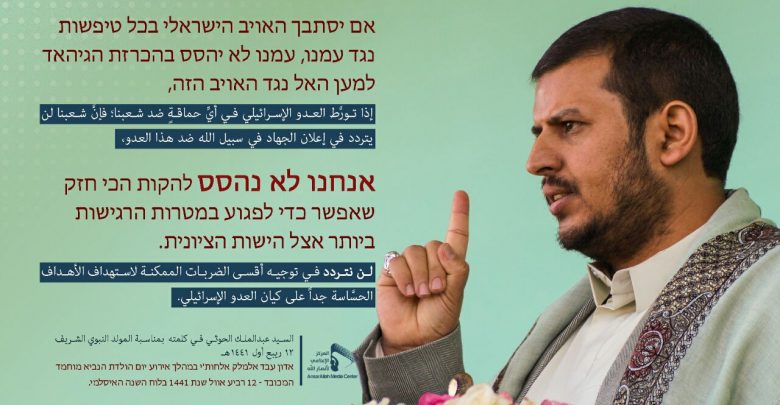 אם יסתבך האויב הישראלי בכל טיפשות נגד עמנו, עמנו לא יהסס בהכרזת הגיהאד למען האל נגד האויב הזה, אנחנו לא נהסס להקות הכי חזק שאפשר כדי לפגוע במטרות הרגישות ביותר אצל הישות הציונית.