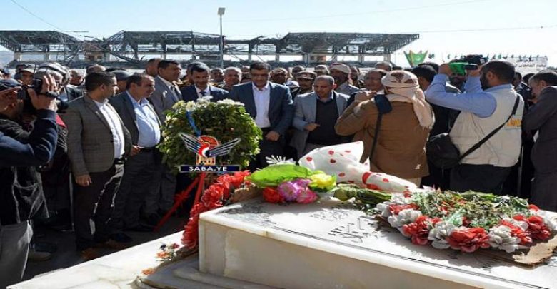وضع وزير الاتصالات وتقنية المعلومات المهندس مسفر عبدالله النمير اليوم الثلاثاء، إكليلا من الزهور على ضريح الرئيس الشهيد صالح الصماد ورفاقه بميدان السبعين.