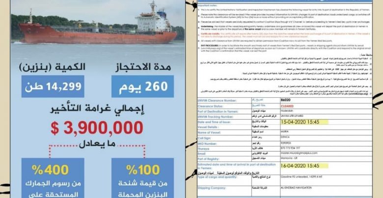 فيما لازال تحالف العدوان يحتجز ” 9 ” سفن مشتقات نفطية لفترات متفاوتة بلغت في أقصاها مدة “267” يوم من القرصنة البحرية غير المسبوقة رغم تفتيشها وحصولها على تصاريح #الأمم_المتحدة .