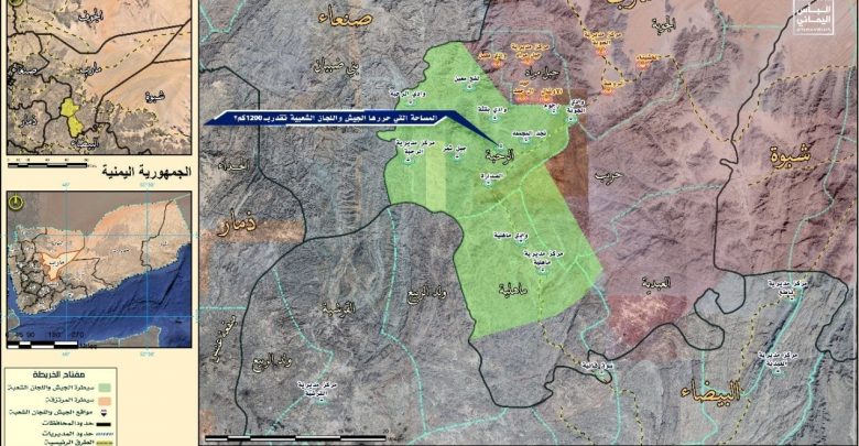 خارطة توضح المساحة التي تم تحريرها في #عملية_النصر_المبين3 والتي تقدر بـ 1200كم٢