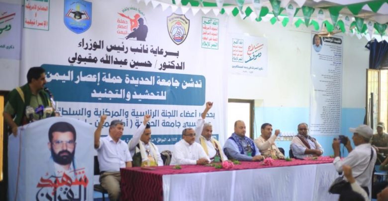 عقد بجامعة الحديدة بمحافظة الحديدة اليوم، لقاء موسع تدشيناً لحملة “إعصار اليمن” للتحشيد والتجنيد والاستنفار الذي يتزامن مع ذكرى الشهيد القائد حسين بدر الدين الحوثي.