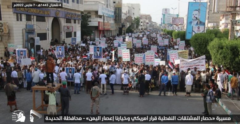 ? صور من مسيرة “حصار المشتقات النفطية قرار أمريكي، وخيارنا إعصار #اليمن ” في محافظة #الحديدة 04-08-1443 | 07-03-2022 #امريكا_تقتل_وتحاصر_الشعب_اليمني