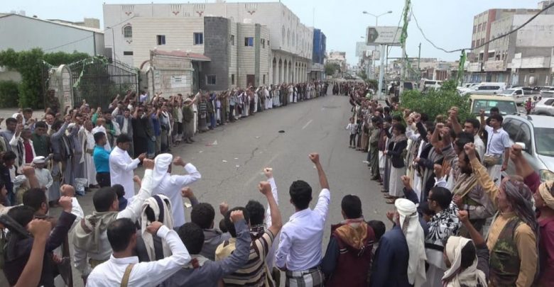 نُظّمت في مديريات محافظة الحديدة اليوم عقب صلاة الجمعة وقفات احتجاجية، للتنديد باستمرار تحالف العدوان الأمريكي السعودي في احتجاز سفن المشتقات النفطية، تحت شعار “حصاركم لن يركعنا وتحية لأجهزتنا الأمنية”.