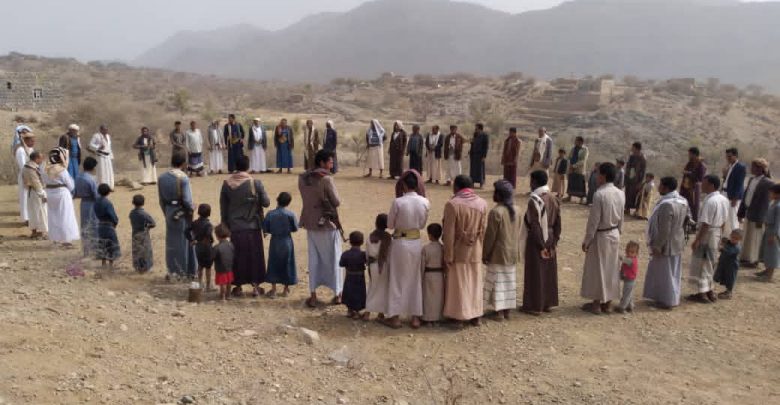 نظم أبناء منطقة الظهرة في مديرية الجميمة بمحافظة حجة وقفة دعماً لحملة إعصار اليمن وتدشينا للعام الثامن من الصمود.