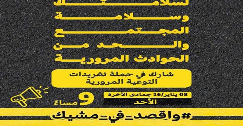 ودعا منظمو الحملة، إلى المشاركة في التوعية من أجل الحد من الحوادث المرورية، وسلامة الفرد والمجتمع، على هاشتاق #واقصد_في_مشيك.