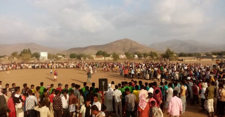 وقفة للقطاع الرياضي في الزهرة بالحديدة تنديداً بحرق نسخ من القرآن الكريم