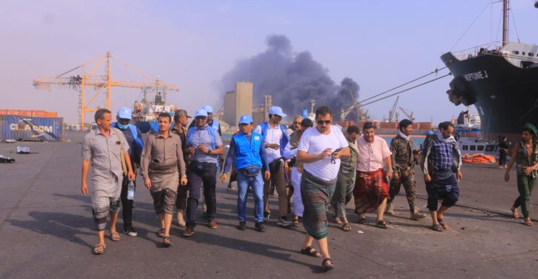 واستمع الفريق الأممي من القيادات المحلية ومسؤولي المنشآت إلى شرح حول فداحة هذه الجريمة وتبعاتها على الوضع الإنساني، ومدى الالتزام بمعايير الأمم المتحدة والإجراءات المتعلقة بخلو الموانئ من أي مظاهر عسكرية، خصوصا وأنها تخضع لرقابة من قِبل بعثة الأمم المتحدة، وزيارات ميدانية متواصلة.