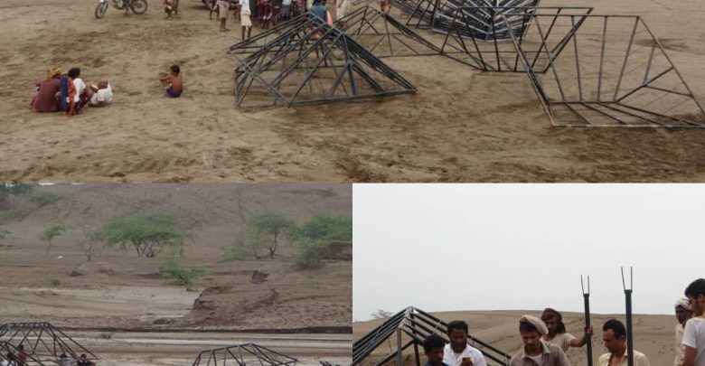 توزيع خيام حديدية لعدد من متضرري السيول بمديريتي زبيد والدريهمي بالحديدة