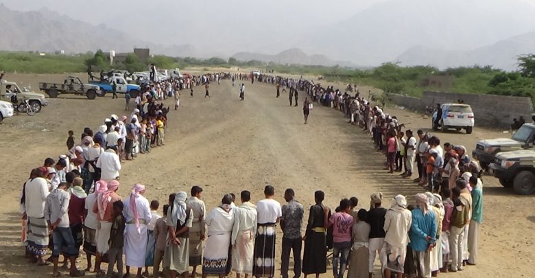 وقفة ومسير لأبناء مديرية السخنة بالحديدة للاستنفار في مواجهة العدو