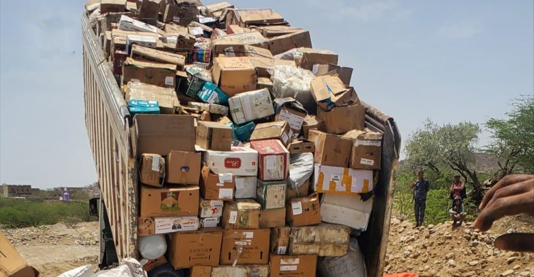 تعز.. جمرك الراهدة يتلف 150 طنا من البضائع المهربة والممنوعة ومنتهية الصلاحية