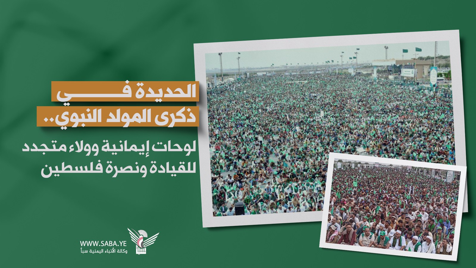 وهكذا رسمت الحديدة في ذكرى المولد النبوي الشريف لوحة إيمانية وإنسانية خالدة، جمعت بين الابتهاج برسول الرحمة، والتأكيد على الثبات في درب الحق، والولاء للقيادة الحكيمة، والانتصار لقضايا الأمة وعلى رأسها فلسطين، لتعلن للعالم أجمع أن أهل اليمن أوفياء للعهد، ماضون على درب المصطفى، متمسكون برسالته الخالدة، مستضيئون بنوره الذي لا يخبو، حتى يرث الله الأرض ومن عليها.