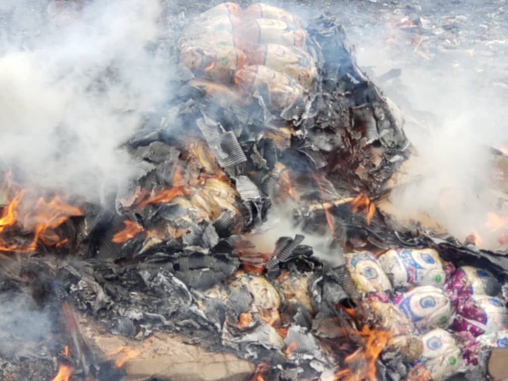 وبحسب محضر الإتلاف، فإن الكمية المضبوطة ثبت عدم صلاحيتها للاستهلاك الآدمي. وقد جرى الإتلاف بحضور صاحب الشأن، وفقاً للإجراءات القانونية والجمركية المتبعة.