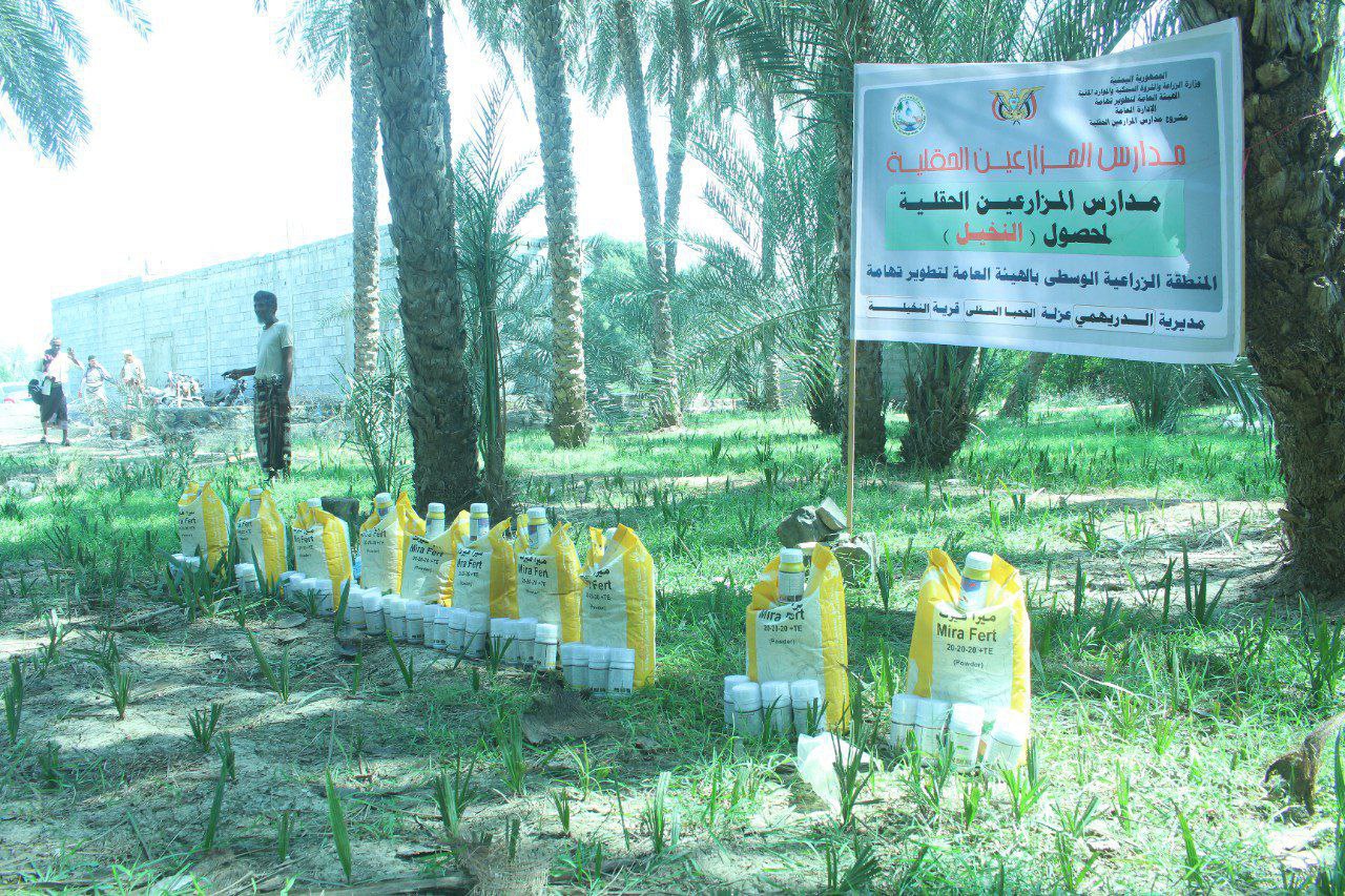 دشّنت جمعية الدريهمي، اليوم توزيع أدوات ومدخلات الحقول الإيضاحية للإنتاج النباتي للمدارس الحقلية الخاصة بمزارعي النخيل في مديرية الدريهمي بالحديدة.