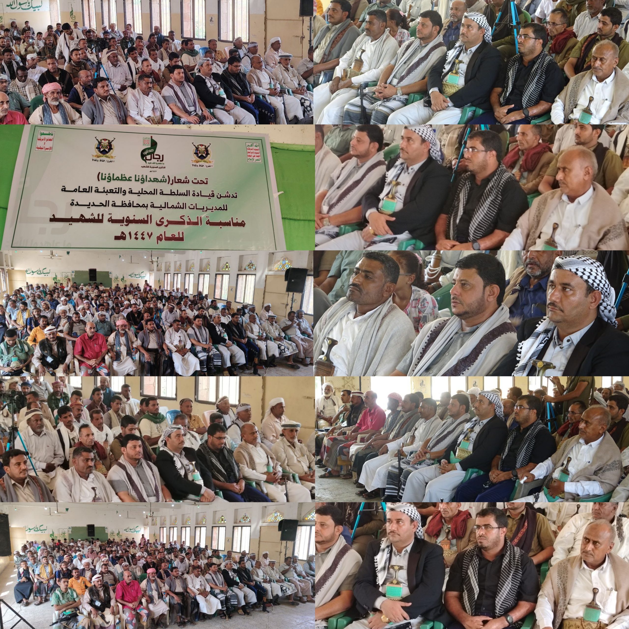 دشنت المديريات الشمالية بمحافظة الحديدة، اليوم فعاليات إحياء الذكرى السنوية للشهيد للعام 1447ه، بفعالية خطابية احتضنتها مديرية الزيدية بحضور رسمي وشعبي.
