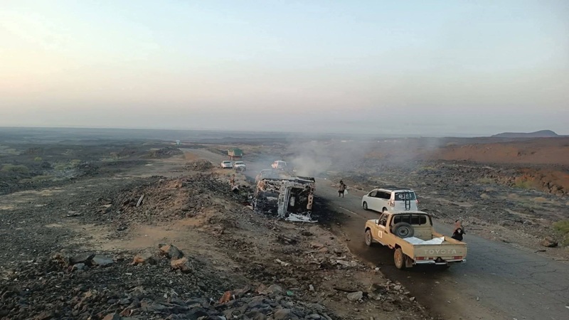 حادث مأساوي في أبين.. عشرات الضحايا باحتراق باص نقل جماعي في منطقة العرقوب