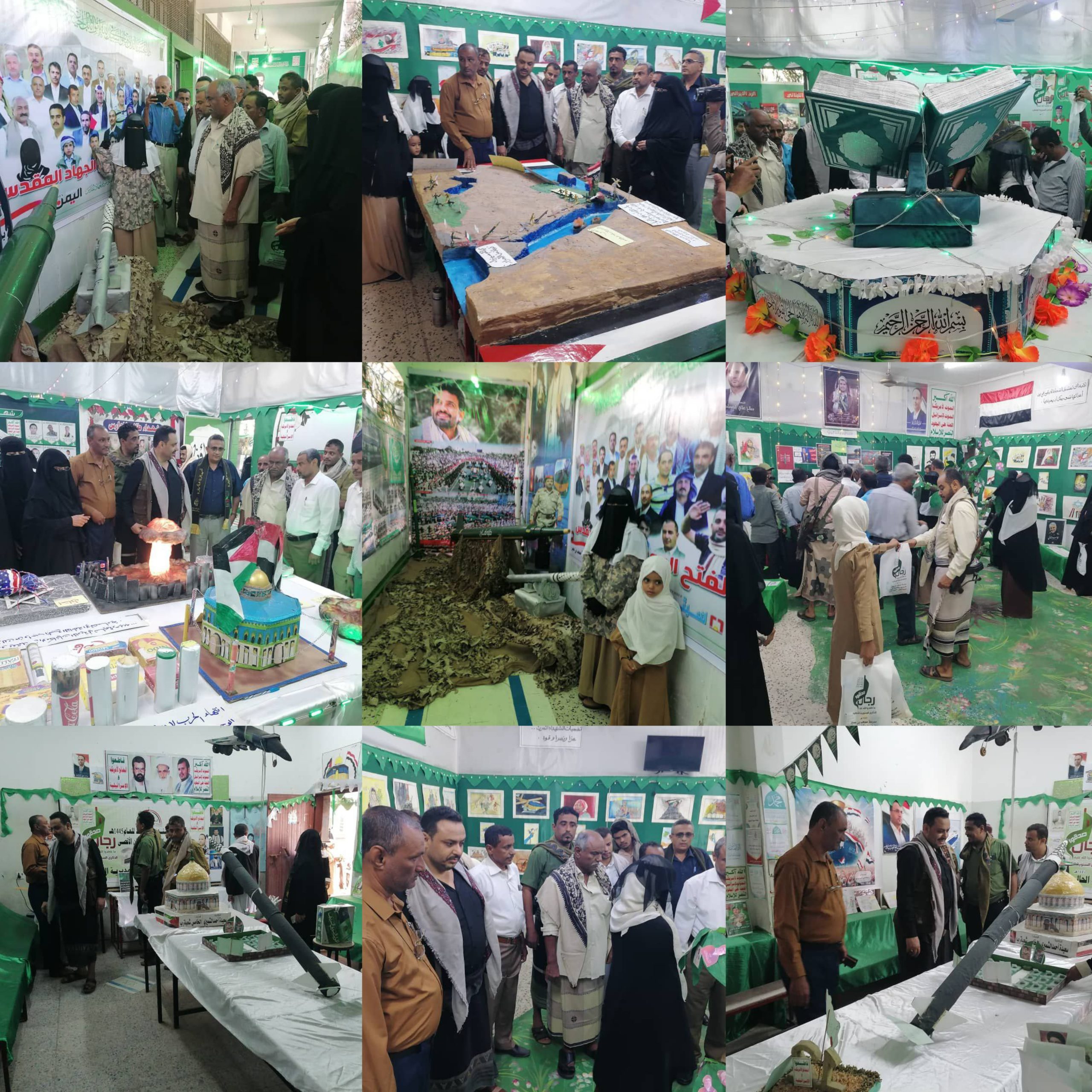 واطلع الوكيل حليصي ومعه مسؤول القطاع التربوي بالمحافظة عمر بحر، ومديرو المؤسسة العامة للمسالخ بالمحافظة عبدالله الشريف، ومديرية الحالي مؤيد المؤيد، وإدارة التربية بالمديرية حسن وهبان، على محتويات المعرضين الذين اشتملا على صور ومجسمات ومقتنيات للشهداء من منتسبي القطاع التربوي، وكذا الشهداء القادة من أبطال اليمن ومحور المقاومة، مجسدةً ملاحمهم وتضحياتهم في الدفاع عن الوطن وقضايا الأمة.