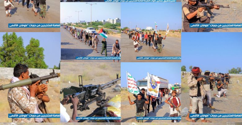 مسير وتطبيق قتالي لخريجي “طوفان الأقصى” من نادي المسيرة في الحوك بالحديدة