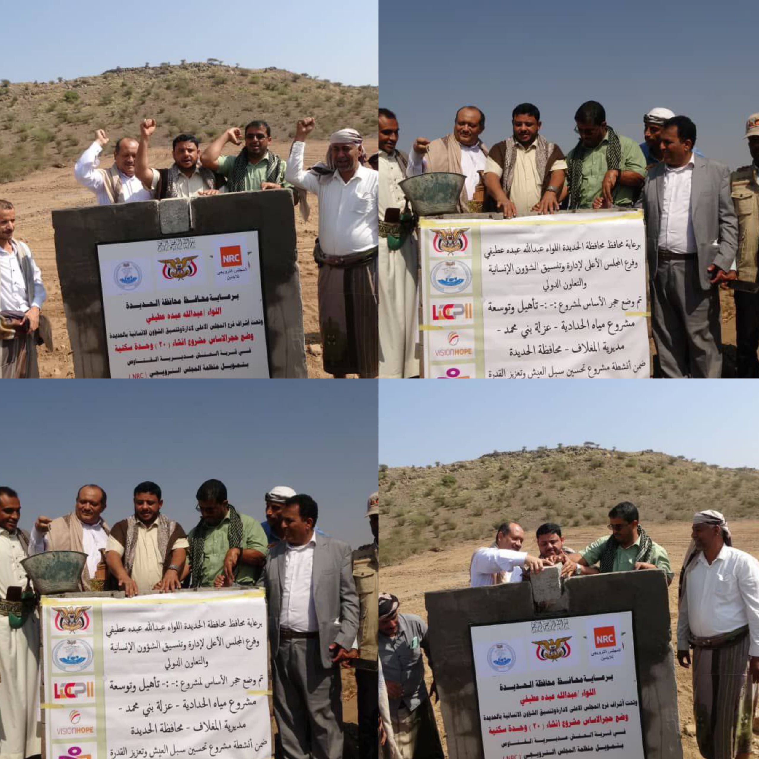 كما وُضع حجر الأساس لمشروع تأهيل وتوسعة مشروع مياه الحدادية بقرية الحدادية عزلة بني محمد، ويشمل بناء خزان مياه برجي خرساني بارتفاع 21 مترا وسعة 75 مترا مكعبا، وتركيب منظومة ضخ تعمل بالطاقة الشمسية وبناء غرفة تحكم، إلى جانب تنفيذ شبكة مياه بطول 9,400 متر طولي، بتكلفة قدرها 125 ألف و595 دولارا، يستفيد منها 6 آلاف و978 مستفيد.