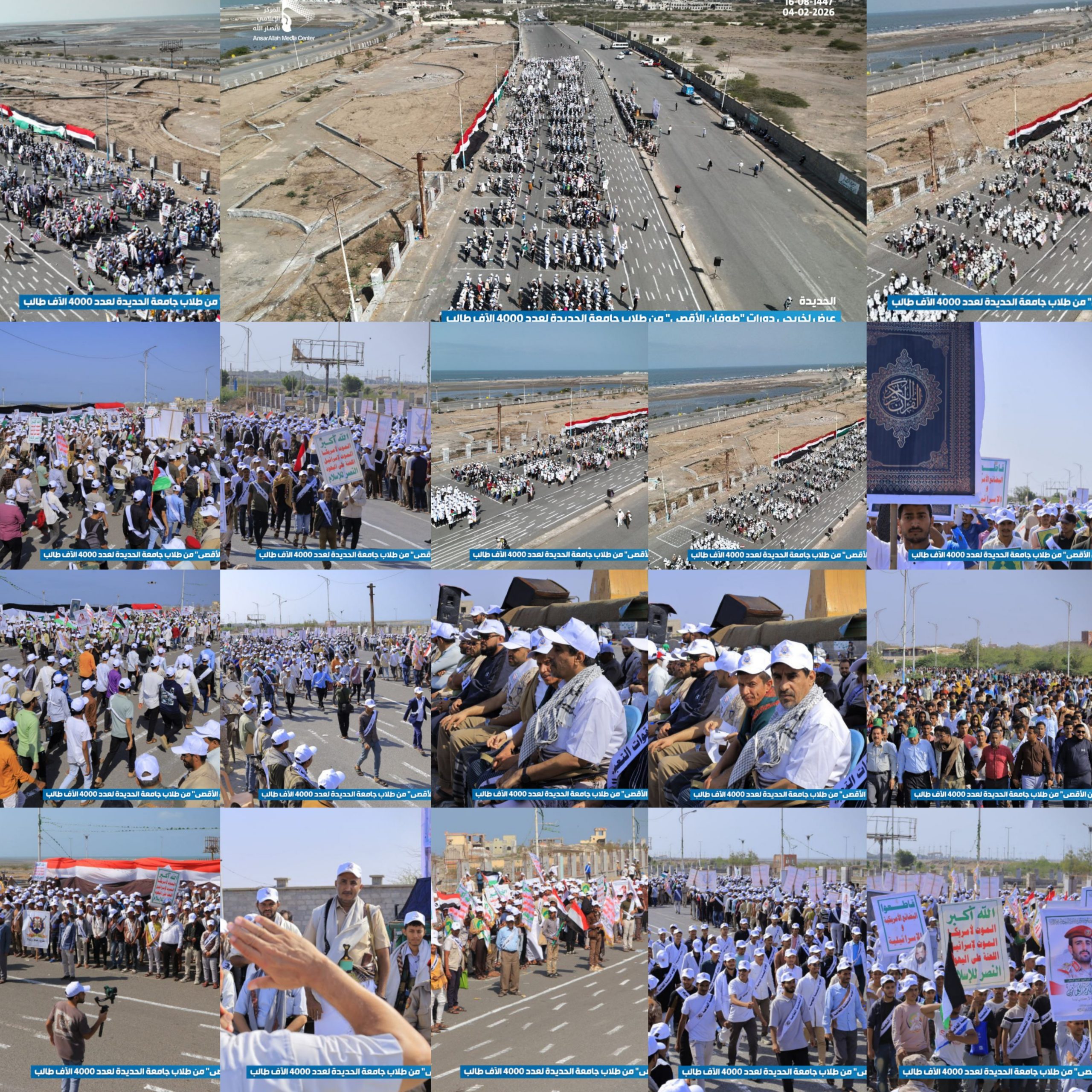 شهدت مدينة الحديدة، اليوم، عرضا مهيبا لأربعة آلاف طالب من الجامعات والمعاهد الحكومية والأهلية، من خريجي دورات “طوفان الأقصى”، التي تأتي في إطار الحملة التعبوية المناصرة لفلسطين، وتعزيز الجهوزية للدفاع عن اليمن.
