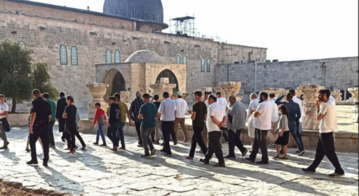 وقالت مصادر مقدسية، إن 84 مغتصبًا دخلوا المسجد الأقصى على شكل مجموعات متتالية وأدوا طقوسًا تلمودية في الجهة الغربية المحاذية لقبة الصخرة.