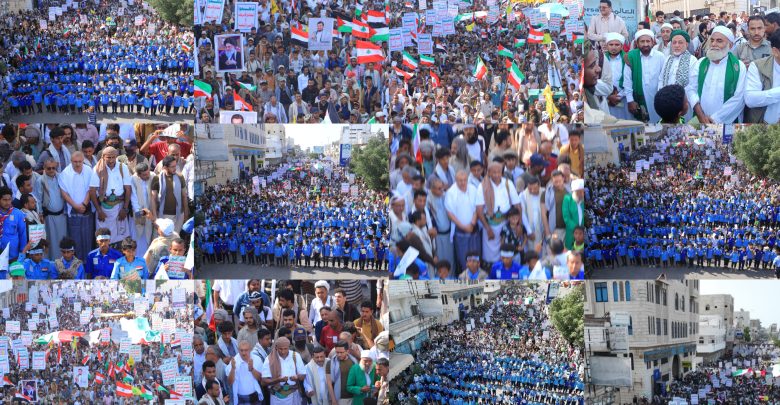 مسيرات كبرى بالحديدة تحت شعار “ساحاتنا واحدة .. مع فلسطين ضد الطغيان ولن نترك لبنان”