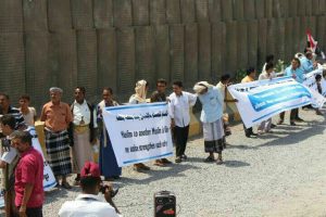 وخلال الوقفة التي نضمتها قيادة السلطة المحلية بالمحافظة ومنظمات المجتمع المدني ، وبحضور وكيل آول المحافظة محمد عياش قحيم ووكيل المحافظة للشؤون المالية والادارية عبدالجبار الجرموزي ونائب مدير اوقاف المحافظة فيصل الهطفي ومدير مديرية الحوك علي هندي ، استنكر المحتجون ما يتعرض له مسلمي بورما من إبادة جماعية على يد سلطات ميانمار وعلى مرآى ومسمع من المجتمع الدولي.