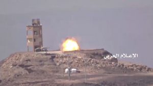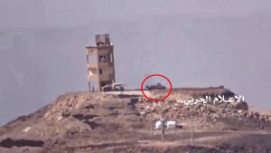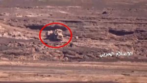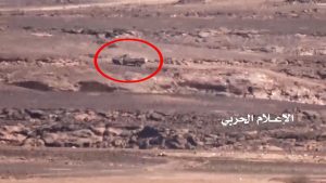 لأستهداف طقم بصاروخ موجه ومشهد للآليات التي تم تدميرها من قبل وحدة الهندسة خلال صد قوات الجيش واللجان الشعبية زحف للجيش السعودي شرق سلسلة جبال الشرفة .