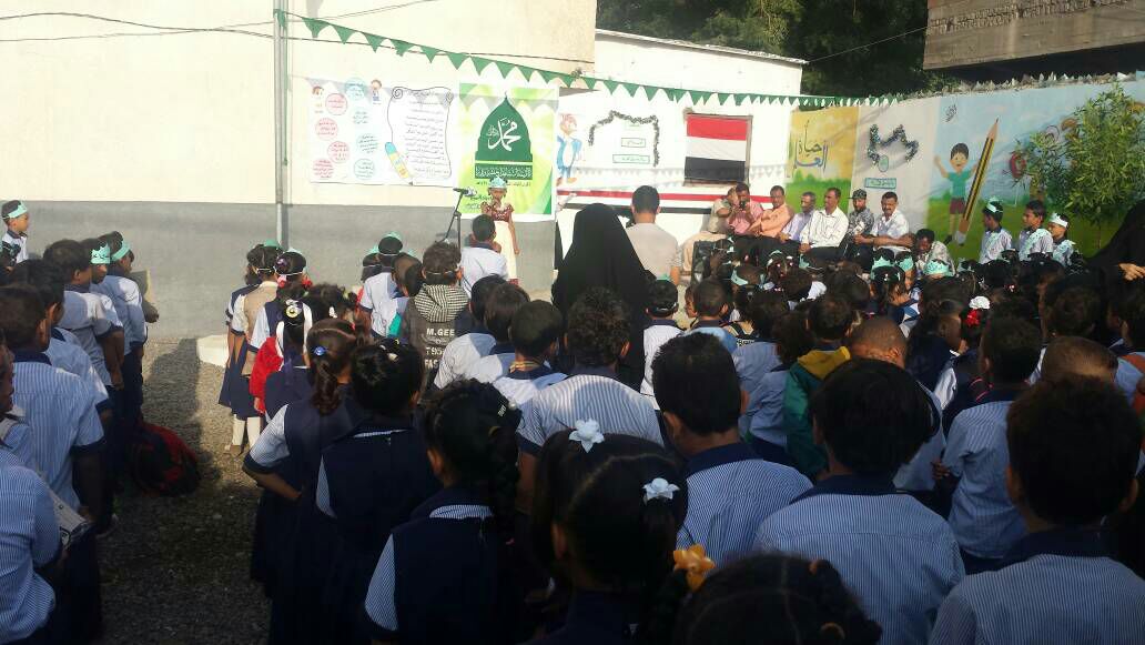 وفي الحفل الذي حضرة مدير التربية بالمديرية ا.حسن وهبان ونائبه اسماعيل قاسم القى مدير المديرية عبدالمنعم عبدالفتاح الرفاعي بالمناسبة كلمة عبر فيه عن الاعجاب لما قدم من قبل زهرات وبراعم المدرسة من اهازيج واناشيد عبرت عن اعتزازهم وفرحتهم بهذه الذكرى الغالية على قلوبنا والتي تاتي في ظل عدوان همجي قتل الاطفال والنساء وهدم المدارس وتأثرت منه البنية للبلاد ولاسيما المنشأت التعليمية كالمدارس وغيرها من مباني وقال نحن بهذا الاحتفال نؤكد على صمودنا وانتصار على العدوان الغاشم ولن يثنينا هذا العدوان السافر والظالم من مواصلة الحياة الطبيعية