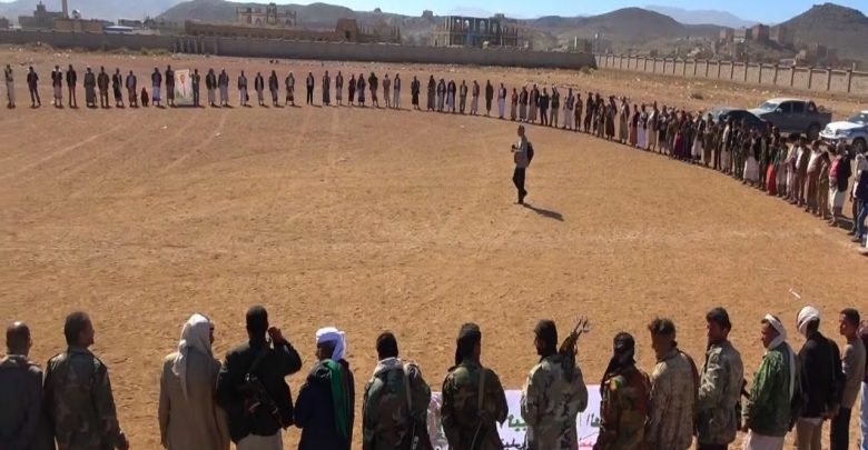 ابناء ومشائخ ووجهاء واعيان مديرية العرش بمحافظة البيضاء نفذوا اليوم وقفة قبلية مسلحة استنكار للجريمة البشعه الذي قامت بها العناصر التكفيرية المسماة داعش واعلان النفير العام ورفد الجبهات بالمال والرجال
