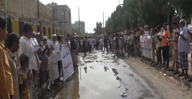 وقفة لأبناء مديرية الدريهمي تدين جرائم وخروقات العدوان