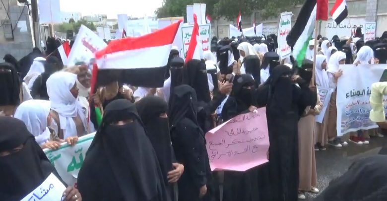 ضمت عدد من الحرائر من مختلف القطاعات الاكاديمية والتربوية والصحية ومنظمات المجتمع المدني والهيئات النسائية وذلك تنديداً واستنكاراً لما اقدم عليه وزير خارجية هادي المدعو خالد اليماني من خيانة بالتطبيع العلني الواضح والفاضح مع كيان الاحتلال الاسرائيلي في ظاهرة لم يسبقه إليها غيره واستغربنا الحاضرات من هذه الهرولة من امراء وملوك الخليج بإتجاه اسرائيل ممن يدعون انفسهم حماة المقدسات وخدام الحرمين واصحاب الوكالة الحصرية في الدفاع عن الدين والمقدسات