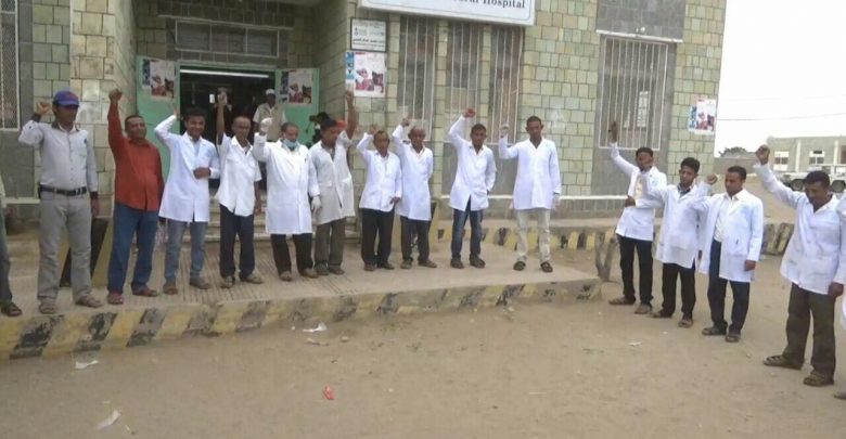 القطاع الصحي بمديرية المنيرة بالحديدة ينظم وقفة احتجاجية تنديدا بالتطبيع وإعلانا للبراءة من الخونة