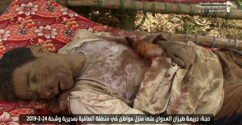 ?? جريمة طيران العدوان الأمريكي السعودي على منزل مواطن في منطقة الصافية بمديرية #وشحة #حجة 24-02-2019