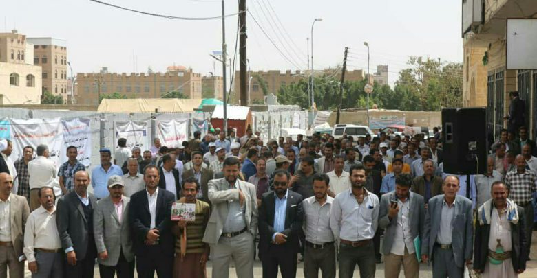 لليوم الثامن عشر على من الاعتصام المفتوح الذي يقيمه نقابات و موظفي شركة النفط اليمنية امام مكتب الامم المتحدة .