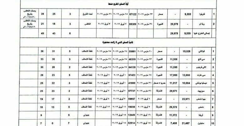 الكشف المرفق يوضح بيانات تفصيلية للسفن التي يحتجزها تحالف العدوان والسفن المفرج عنها حتى يوم الأربعاء الموافق 2019/4/24م