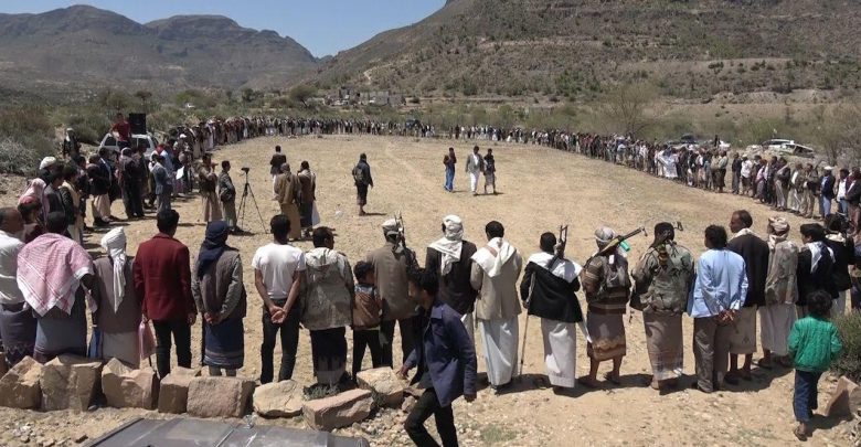 وقفة قبلية غاضبة في عزلة شعب المريسي بالعود محافظة إب ضد جرائم العدوان