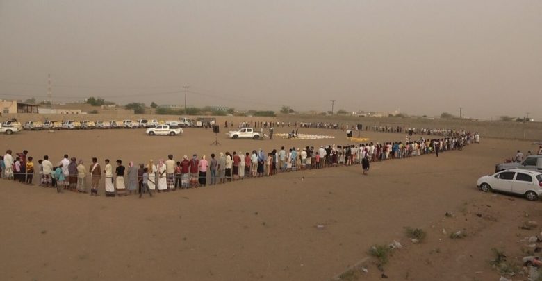 قافلة غذائية رمضانيه ووقفة قبلية لأبناء مديرية القناوص استنكارا لجرائم العدوان ومرتزقته