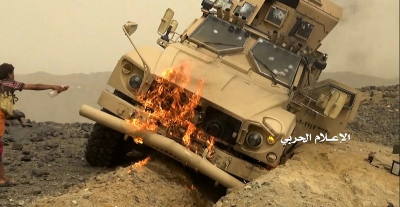 #حجة: صور لإحراق مدرعة واغتنام أسلحة بعد كسر زحف لمرتزقة العدوان شرق جبل النار #انفروا_خفافا_وثقالا