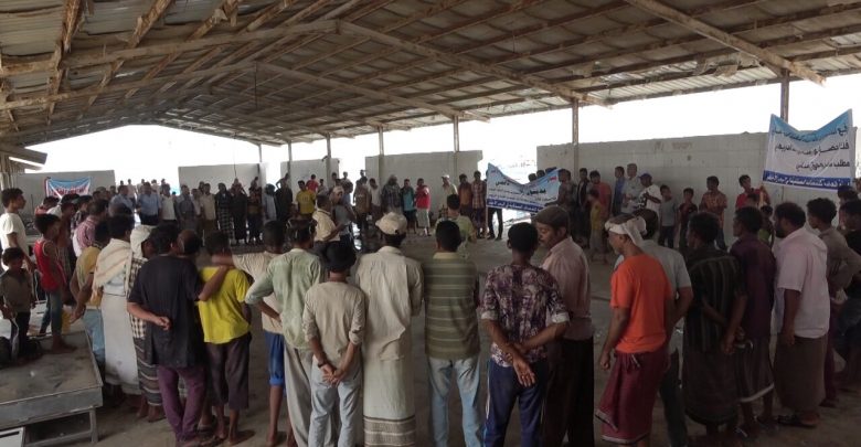 وقفة لصيادي وموظفي القطاع السمكي #بالحديدة تندد باستمرار خروقات العدوان