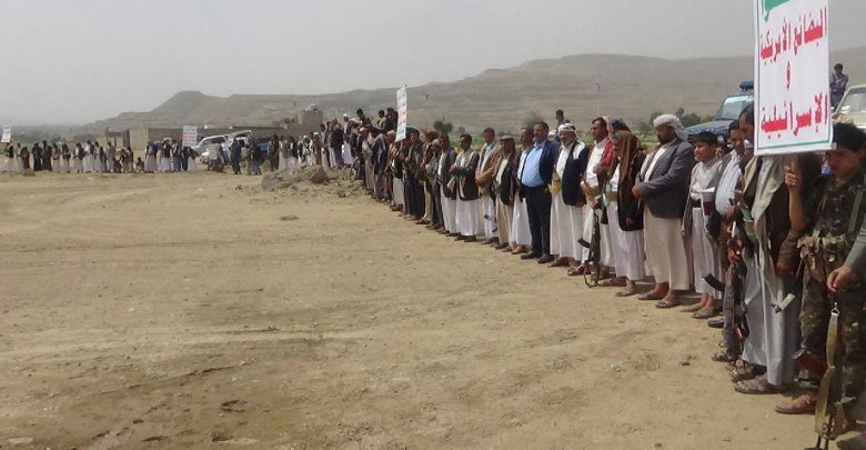 وقفة قبلية مسلحة لأبناء مديرية عمران تنديداً بجرائم العدوان التي يرتكبها بحق أبناء الشعب اليمني