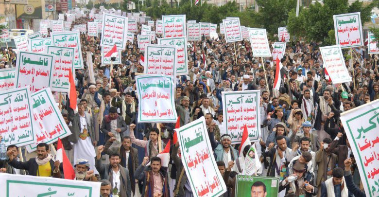 #صنعاء : صور من المسيرة الحاشدة التي خرجت عصر اليوم أمام بوابة #مطار_صنعاء بعنوان “استمرار الحظر الجوي والحصار جرائم أمريكية” للمطالبة بفتح مطار صنعاء وايقاف الحصار الجائر عليه . ‎#lift_the_blocked_of_sana_airport ‎#ارفعوا_الحظر_عن_مطار_صنعاء #أعيادنا_جبهاتنا