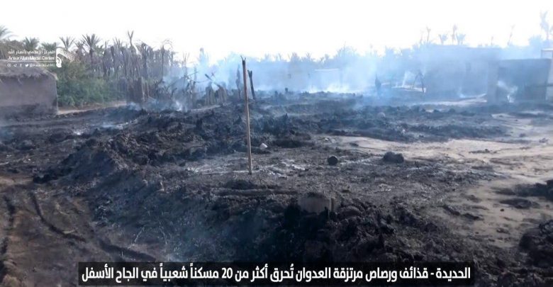 #الحديدة : صور استهداف قوى العدوان بالقذائف والعيارات الرشاشة أدت إلى احراق أكثر من 20 مسكناً شعبياً في الجاح الأسفل #جرائم_العدوان_في_الحديدة #العدوان_يخرق_اتفاق_السويد