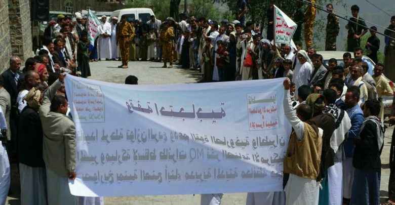 ابناء منطقة الحسوي والجراف بمدينة حجة ينظمون وقفة احتجاجية