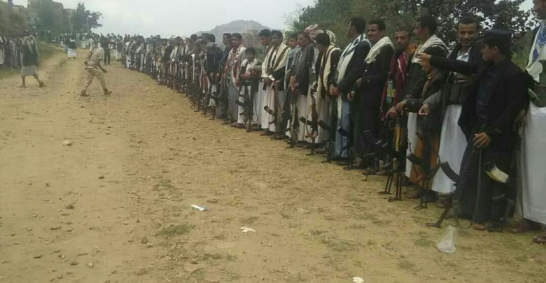 حجة: وقفة احتجاجية مسلحة لقبائل مديرية بني العوام رفضآ للعدوان