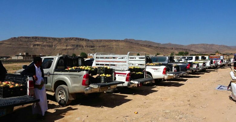واحتوت القافلة على عدد كبير من سلال الرمان ومواد غذائية متنوعة ومبالغ ماليه .