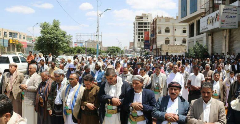 موظفي ونقابة شركة النفط اليمنية وجموع من المواطنين يوديا صلاة الجمعة الـ 24 في شارع الستين وينظما وقفة احتجاجية أمام مكتب الأمم المتحدة بصنعاء .