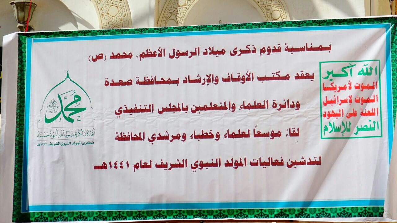 عقد اليوم بمحافظة صعدة لقاء موسع لعلماء وخطباء ومرشدي المحافظة لتدشين فعاليات المولد النبوي الشريف لعام 1441 هــ نضمه مكتب الأوقاف والإرشاد بالمحافظة ودائرة العلماء والمتعلمين بالمجلس التنفيذي