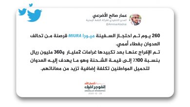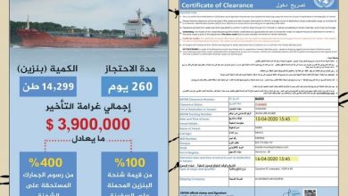 هذا وقد بلغ إجمالي غرامات التأخير المترتبة على احتجاز السفينة المذكورة مبلغ ( 3,900,000) دولار. ويجري حالياً استكمال إجراءات الفحص…